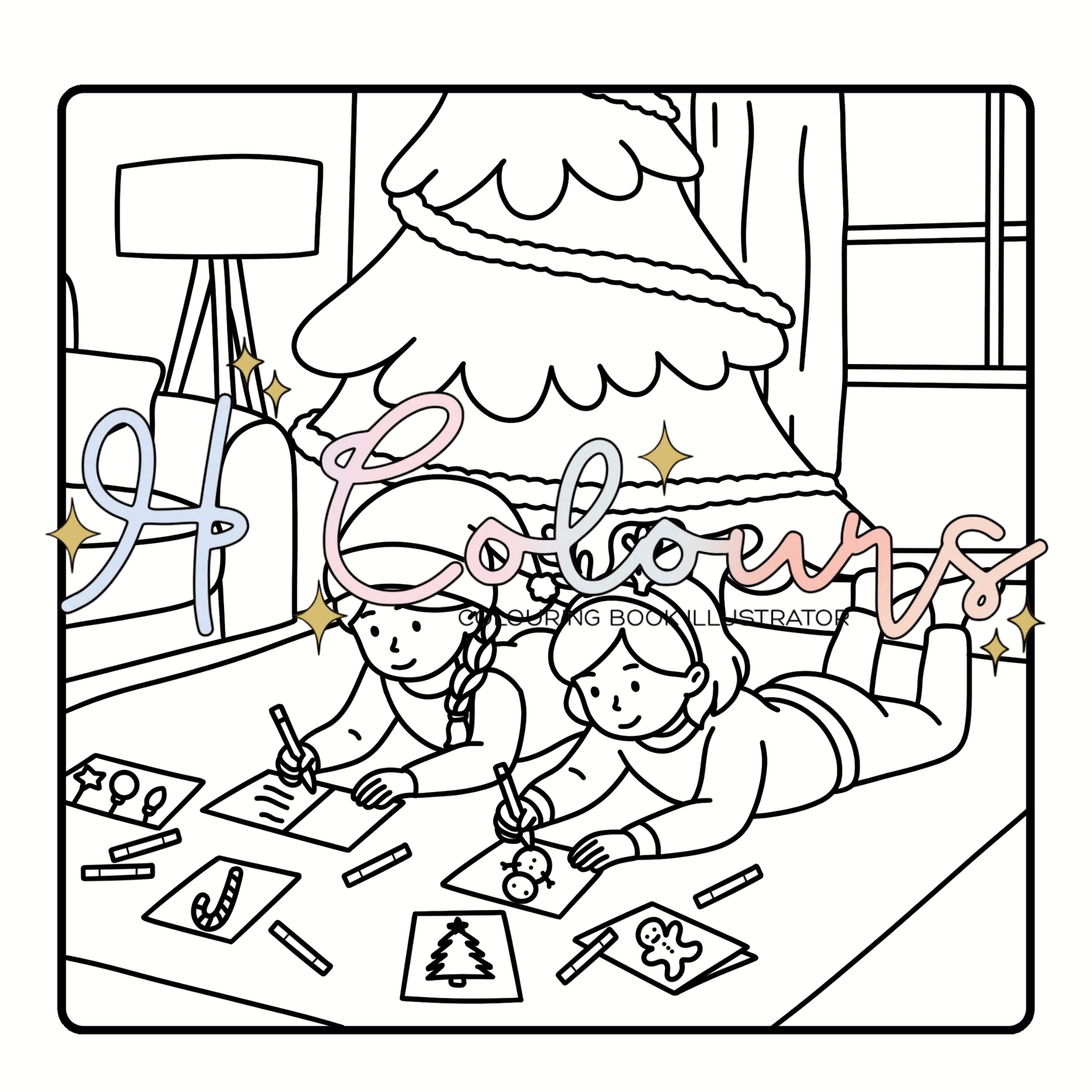 Bring festive cheer to your home with this delightful digital Christmas colouring page. Perfect for children, it features two young artists enjoying creative time together as they colour in cheerful holiday pictures and seasonal cards. Simply download, print, and let the festive fun begin. An ideal activity for rainy days, holiday gatherings, or quiet creative moments.