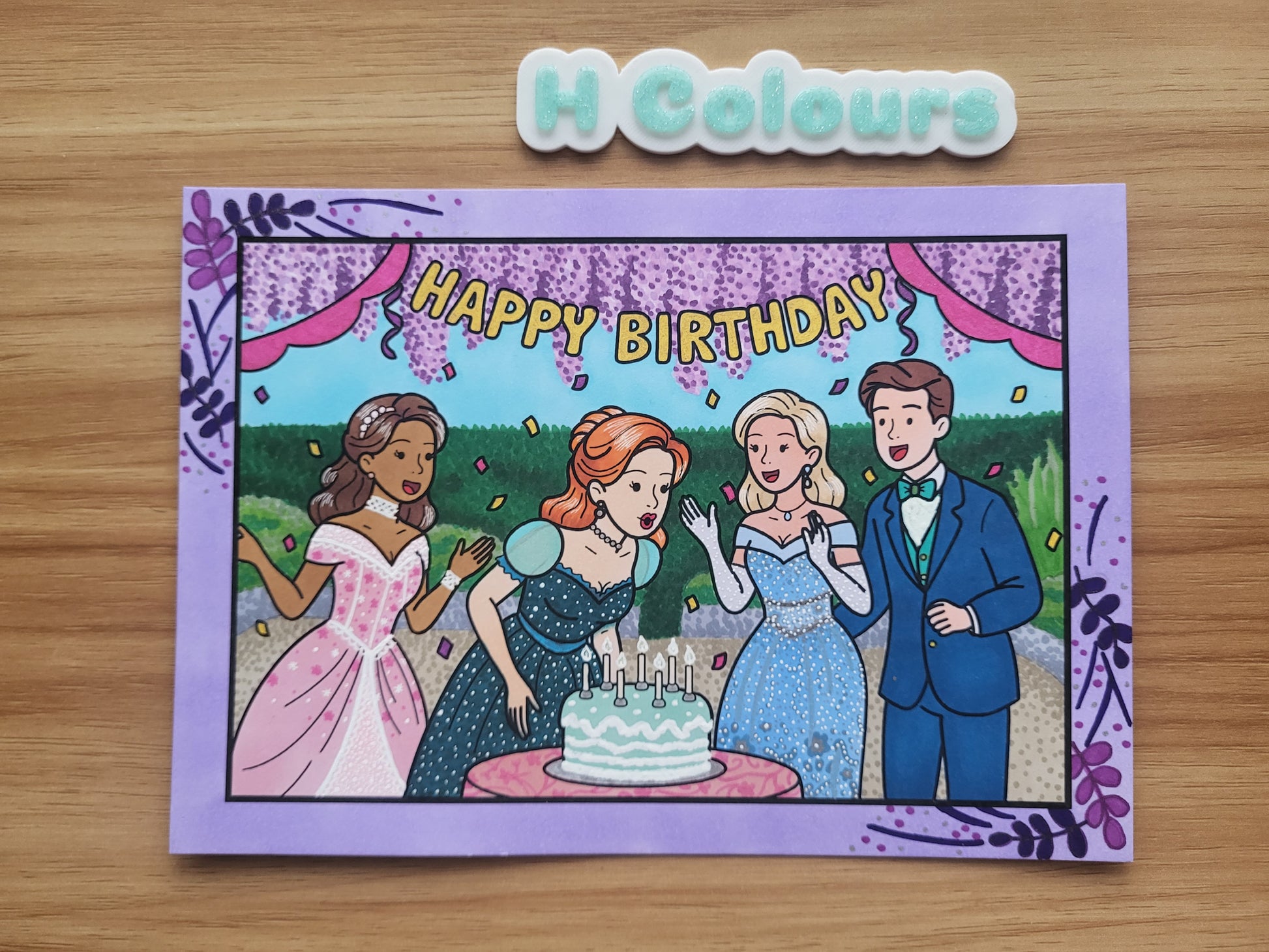Celebrate with a creative twist. These charming postcards feature birthday scenes—from elegant balls to candle-blowing moments—ready for your personal touch. Colour them in with friends, make them uniquely yours, and send a one-of-a-kind greeting. Perfect for adding a handmade feel to birthday wishes.